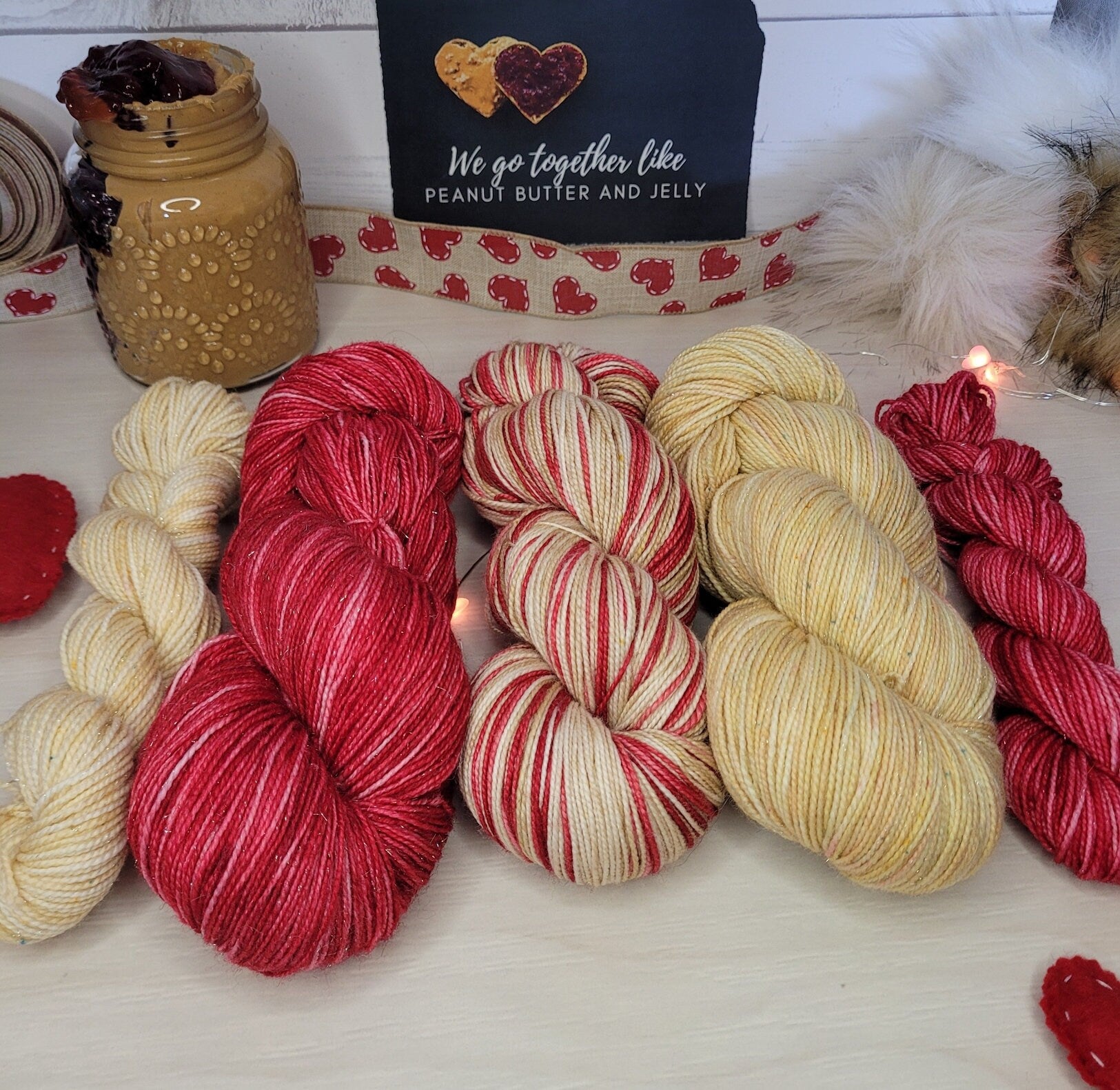 Peanut Butter and Strawberry Jelly, Sock Set, Glitter Sock, Mini Skein, Full Skein, Sparkle Sock, Wool